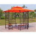 涼亭(JJBH-02):由黑色的鐵架和紅色的頂蓋組成,并附有4個座椅,可供8-10人同時休閑,適合與小區綠色花園相搭配