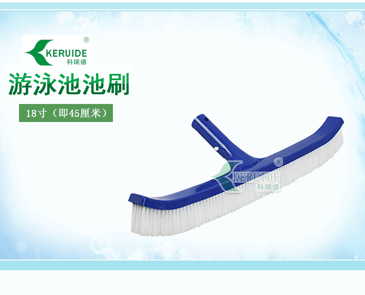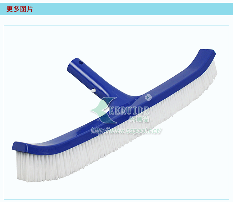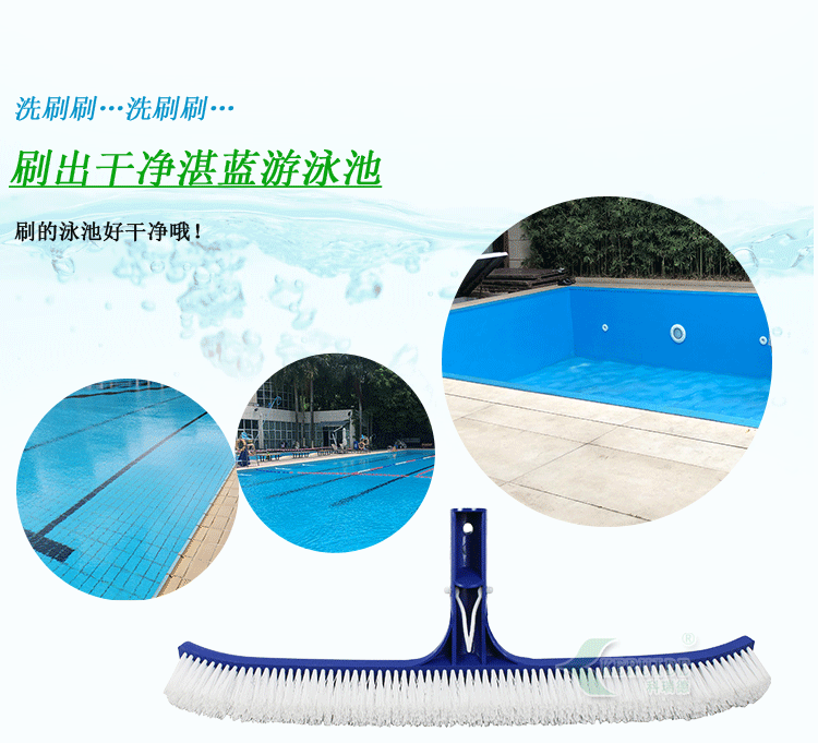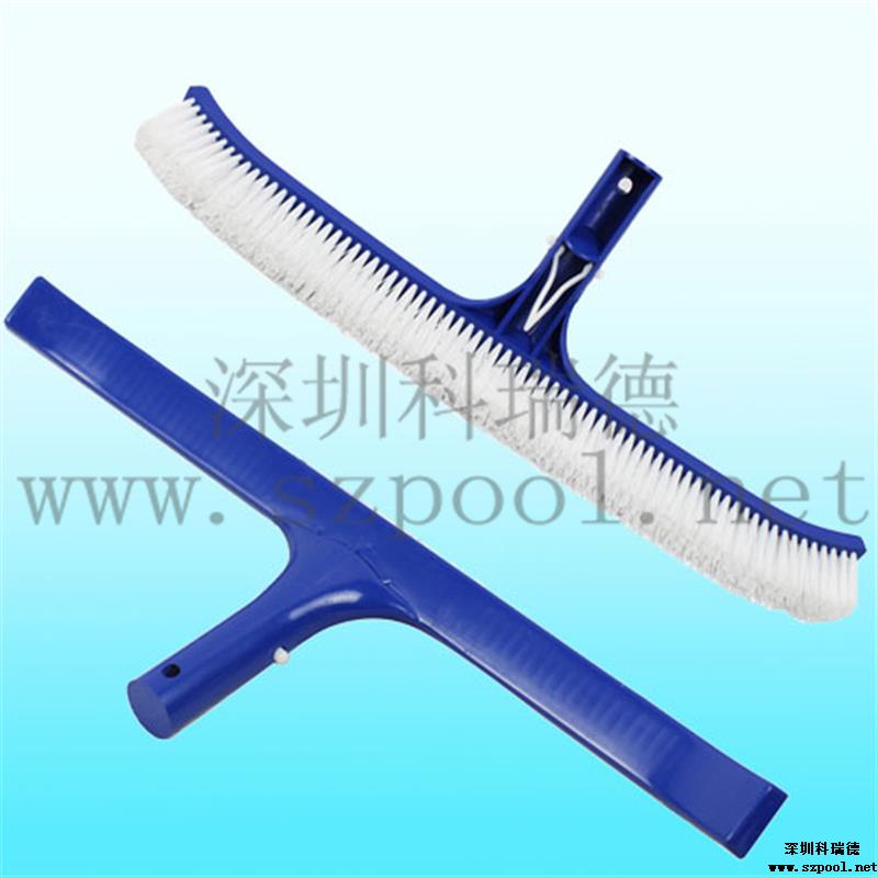 游泳池池刷:用于清潔游泳池池底及池壁的刷子,屬于游泳池清潔用具或游泳池清潔用品。一般和伸縮桿相連使用。主要用于清潔游泳池池底及池壁,可以刷除各種附在池底或是池壁的污垢或是青苔。