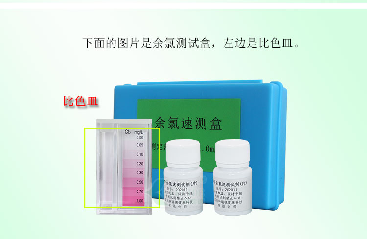 3,將水樣的顏色與色卡的顏色對比,選接近的讀數就是水樣的余氯濃度,單位是mg/L。