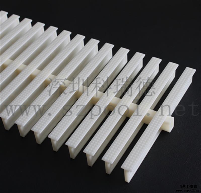 游泳池格柵:游泳池格柵是作為游泳池四周排水溝的塑料蓋板,屬于游泳池工程配件的一種。也叫格柵,防滑渠面格柵,游泳池排水溝格柵。