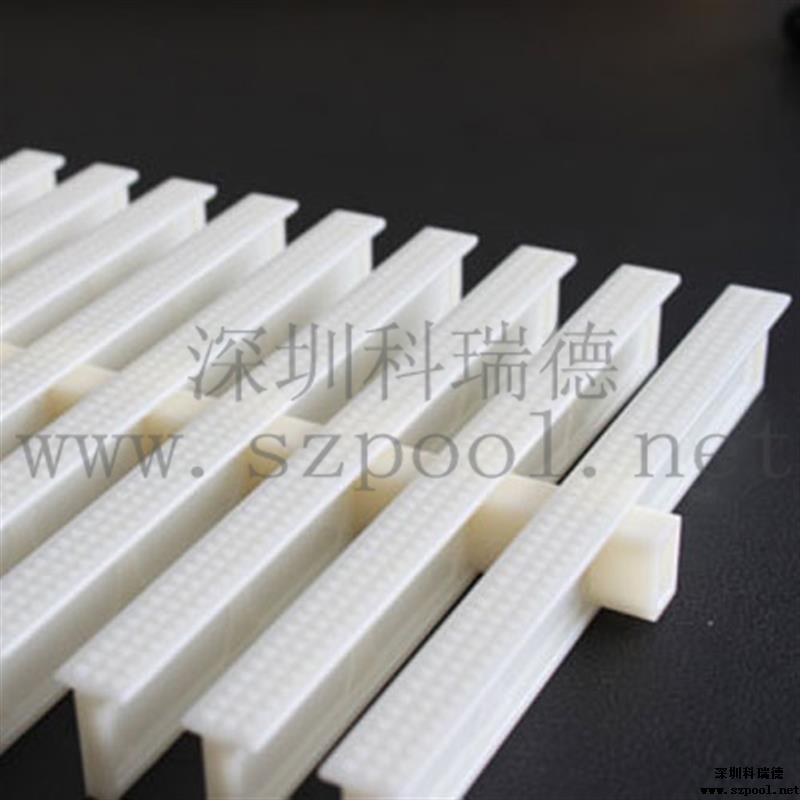 游泳池格柵又,名格柵,防滑渠面格柵或者是游泳池排水溝格柵。游泳池格柵是作為游泳池四周排水溝的塑料蓋板。本產(chǎn)品具有:防滑、耐腐蝕,抗老化等特性,組分容易,安裝簡單,它的梳形格柵接口不會(huì)堵塞,令清潔工作輕松方便,并可根據(jù)泳池的各種形狀隨意隨意拼接而無須裁剪。