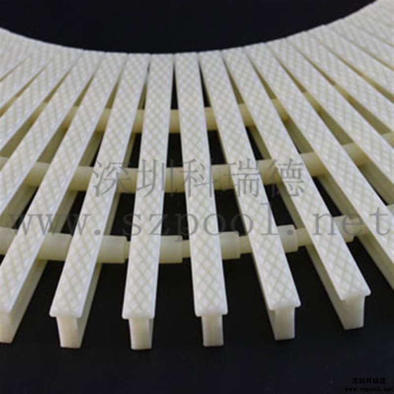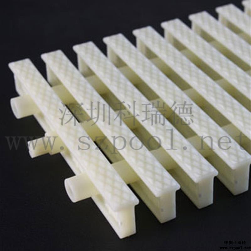 游泳池溢水格柵:簡(jiǎn)稱格柵,又名泳池游泳池排水溝格柵,防滑渠面格柵。每個(gè)游泳池周圍都需要設(shè)置排水溝,游泳池格柵是作為游泳池四周排水溝的塑料蓋板,這樣可以防止人們掉進(jìn)排水溝,而且可以將岸上的水排入水溝,岸邊不積水。并該格柵還有防滑的作用,防止人們踩上去滑倒。