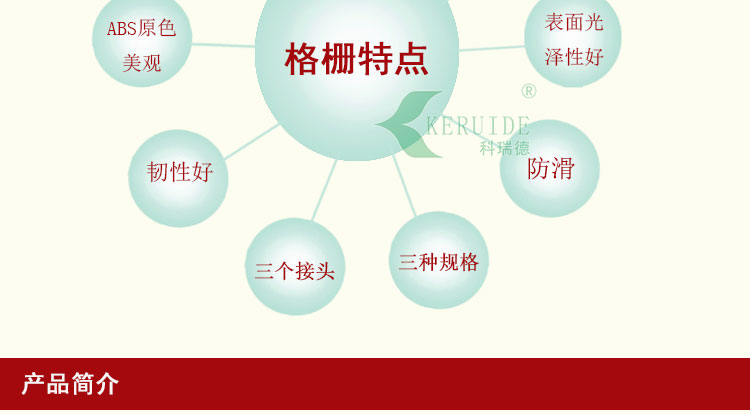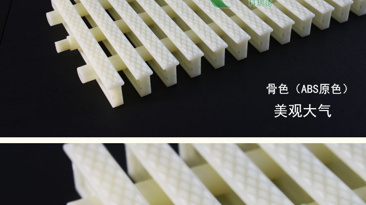 格柵材質(zhì)為ABS塑料制成,具有優(yōu)良的抗沖擊性、耐熱性、耐低溫性、耐化學(xué)藥品性及電氣性能,還具有格柵尺寸穩(wěn)定、表面光澤性好等特點(diǎn)。