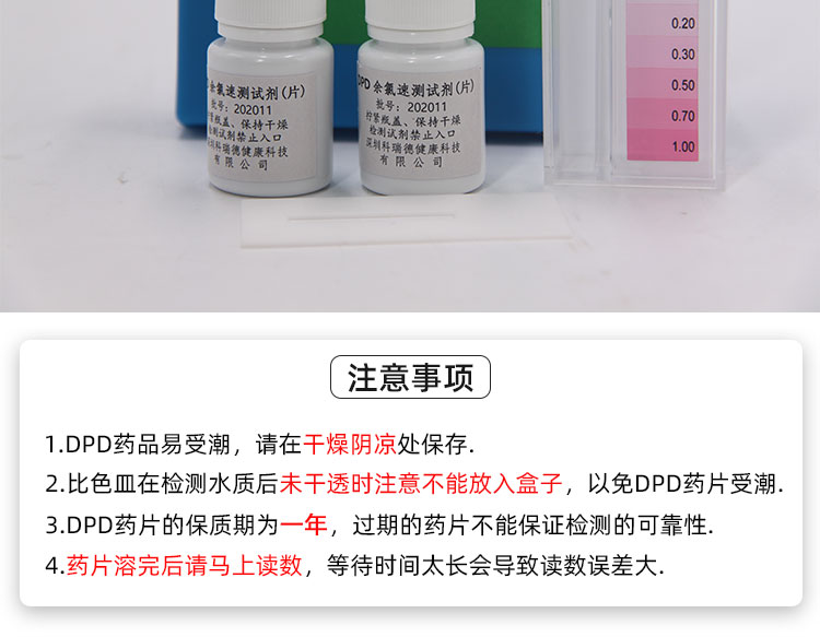 4、藥片溶完后請馬上讀數(shù),等待時間太長會導(dǎo)致讀數(shù)不準(zhǔn)。