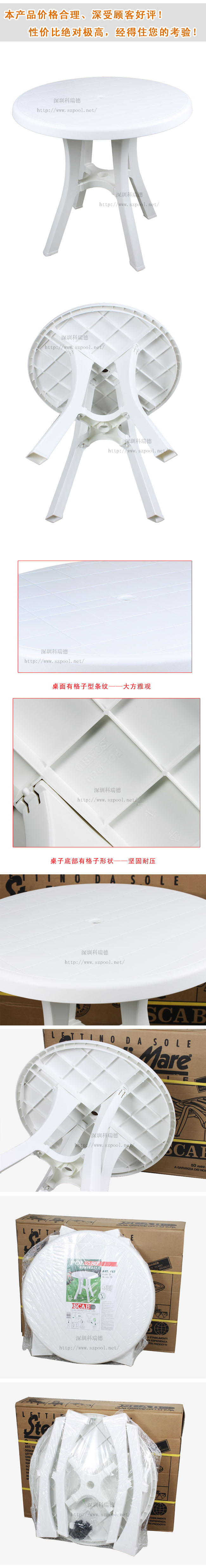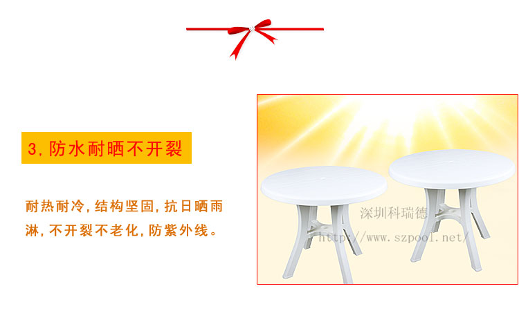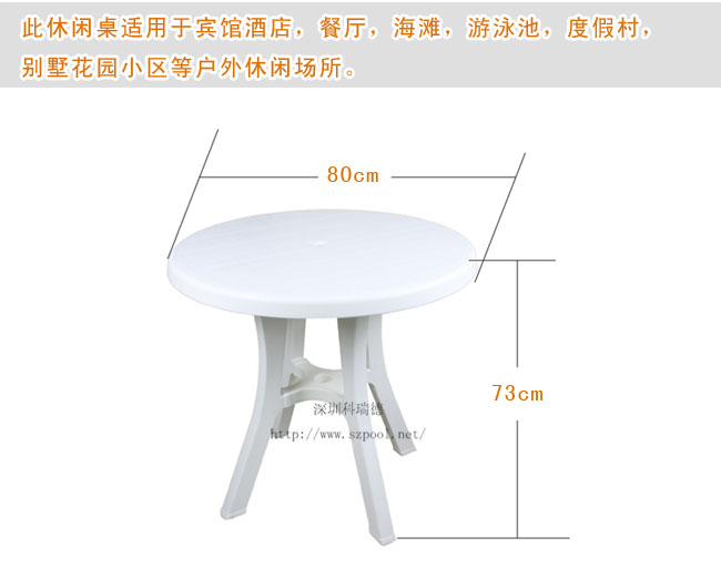 沙灘桌,一般叫法為沙灘桌,也叫戶外家私,塑料桌,休閑桌椅。用于游泳池場所及海灘等游泳場所或休閑會所的休閑桌椅,本產品是一款組裝型的桌子,方便移動,搬運,及物流。屬于游泳池休閑用品的一種。