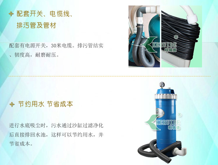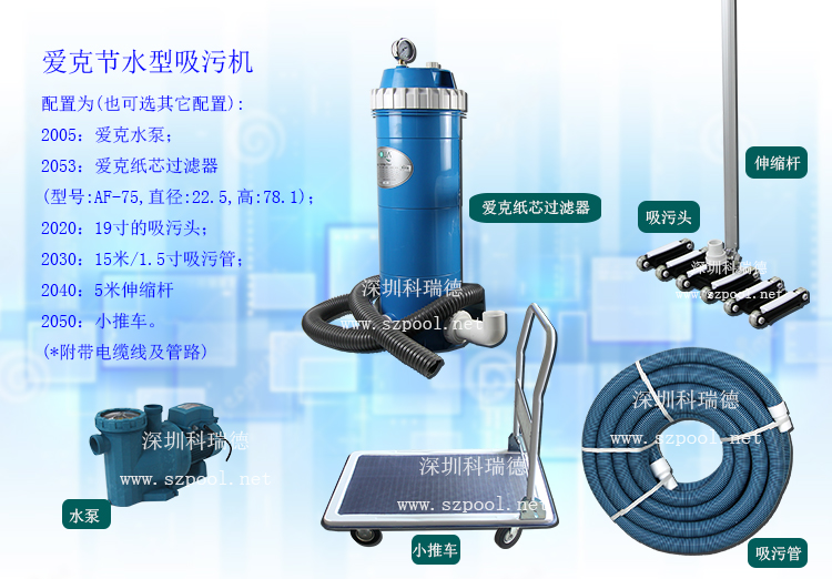 愛(ài)克游泳池吸污機(jī)配置為(也可選其它配置):