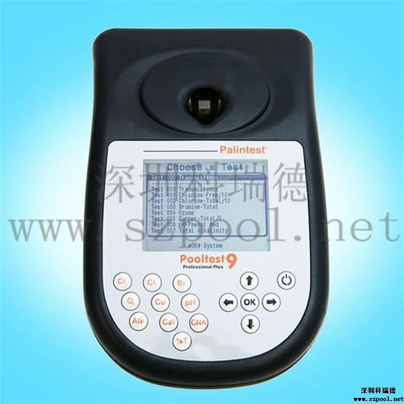 標準的Pooltest 9檢測套件包含一臺光度計主機和一只便攜式手提箱,