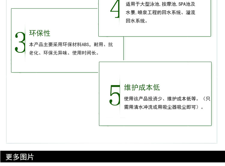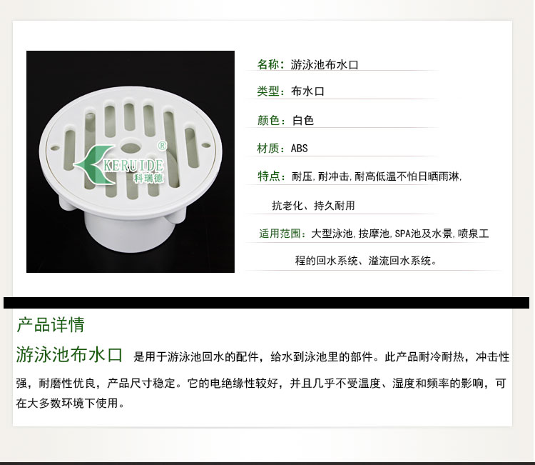 游泳池布水口:是用于游泳池回水的配件,給水到泳池里的塑料件。