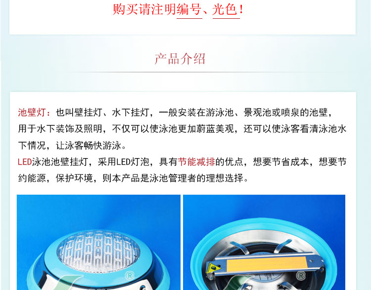 LED泳池池壁掛燈,采用LED燈泡,具有節能減排的優點,想要節省成本,想要節約能源,則本產品是泳池管理者的理想選擇。