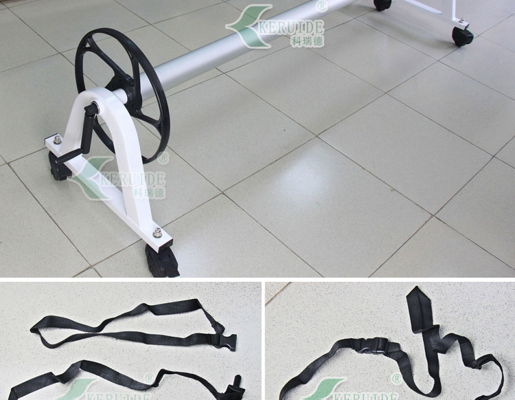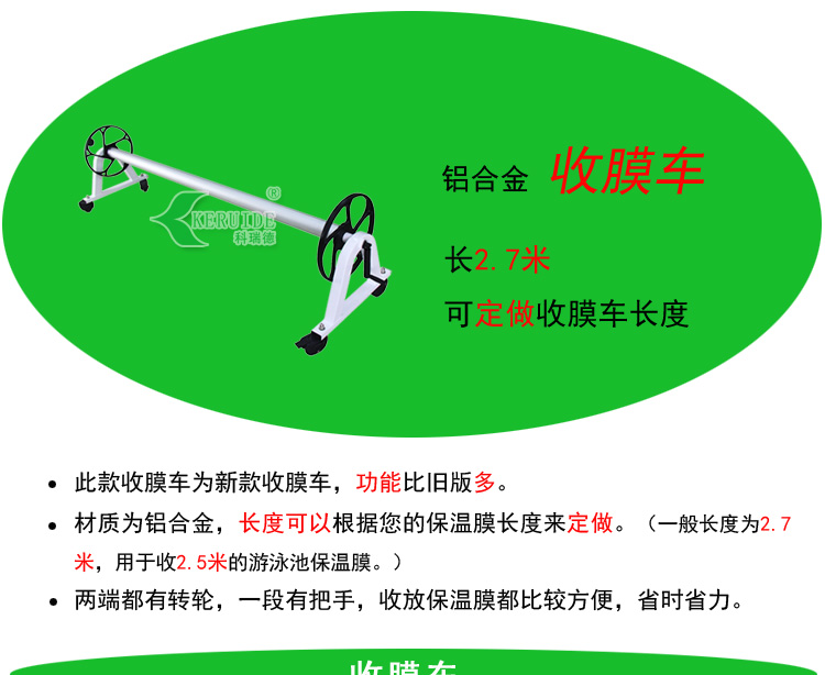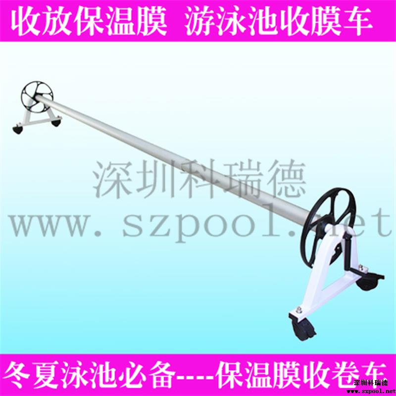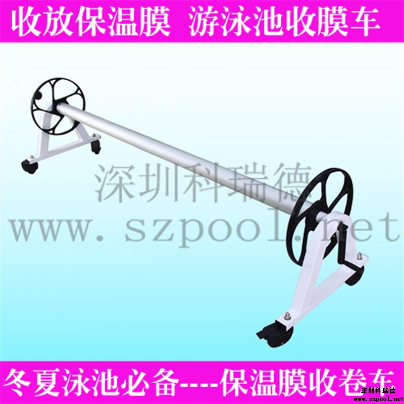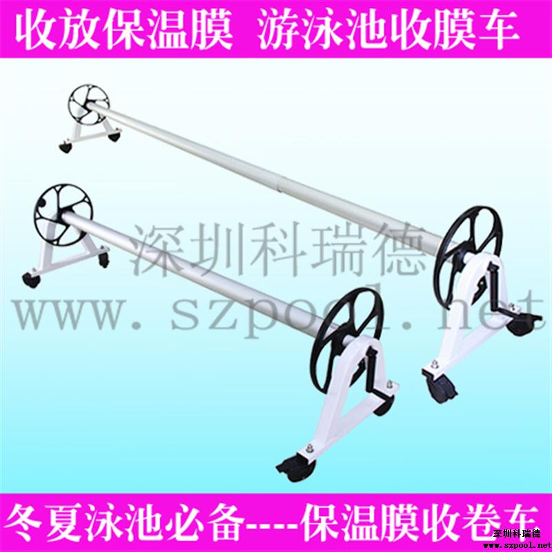 保溫膜收膜車:用于收放泳池保溫膜的。本款保溫膜收膜車采用強韌鋁合金制成,質量可靠,耐腐蝕,使用壽命長久。造型簡單,使用方便。
