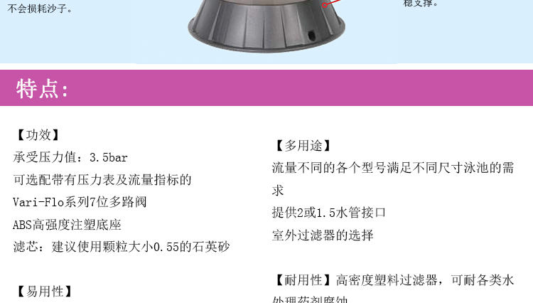 流量不同的各個型號滿足不同尺寸泳池的需求