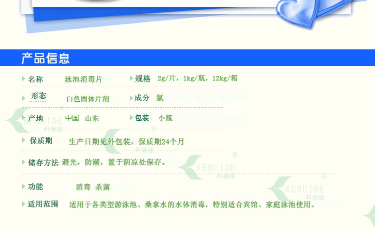 【包裝規格】:2g/片,1kg/瓶,12kg/箱