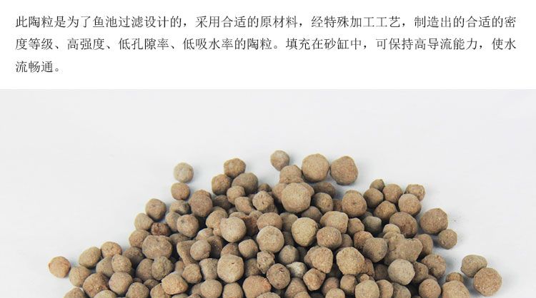 魚池專用過濾材料陶粒,陶粒就是陶質的顆粒。填充于魚池過濾器中作為濾料使用,是魚池的過濾材料之一。與活性炭,石英砂,微生物過濾球一起填充于魚池過器中,凈化過濾水質。陶粒呈不規則碎石狀,也就是仿碎石陶粒。有較高的強度,顏色為灰黃色。陶粒的粒徑一般為5~20㎜大粒徑為25㎜。