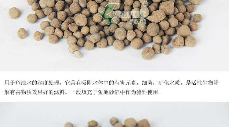 作用:適用于魚池水的深度處理,它具有吸附水體中的有害元素,細菌,礦化水質,是活性生物降解有害物質效果好的濾料。一般填充于魚池砂缸中作為濾料使用。