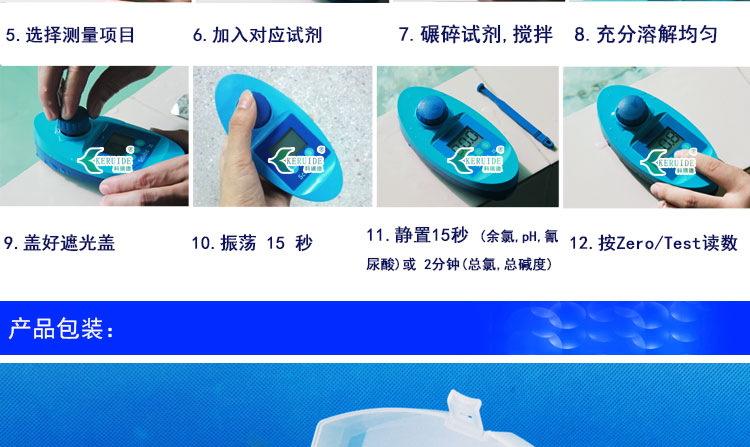 只需幾分鐘,羅維邦水質(zhì)檢測儀即可完成五項(xiàng)重要指標(biāo)測定(余氯,總氯,pH值,總堿度和氰尿酸)。檢測快速,水質(zhì)快速測定方法簡單,無繁雜步驟,從而節(jié)省測試時間,達(dá)到快速檢測的目的。便于攜帶。儀器的形狀根據(jù)手形設(shè)計,手握起來很舒適,使檢測工作能夠順利的進(jìn)行。