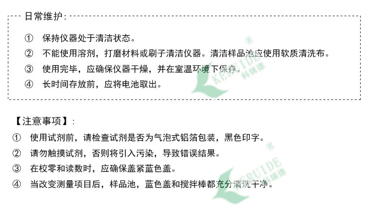 ④當(dāng)改變測量項(xiàng)目后,樣品池,藍(lán)色蓋和攪拌棒都充分清洗干凈。