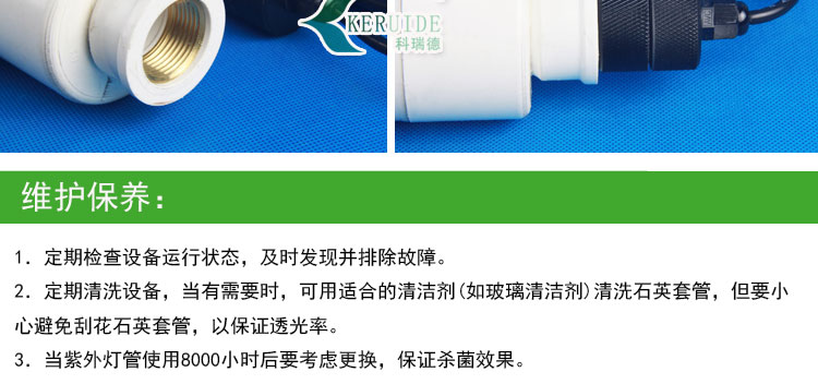 3.當(dāng)紫外燈管使用8000小時(shí)后要考慮更換,保證殺菌效果。