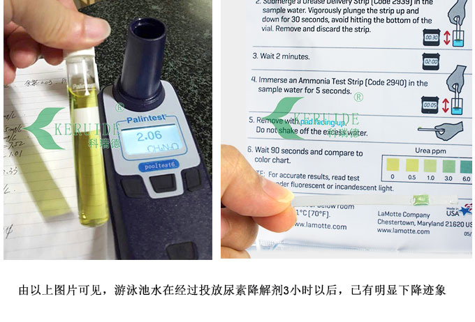 5.一周使用1次尿素降解劑,能有效防止尿素超標。由于游泳的人數增多會加快藥效消耗,所以具體使用情況要根據消耗程度調整 ;