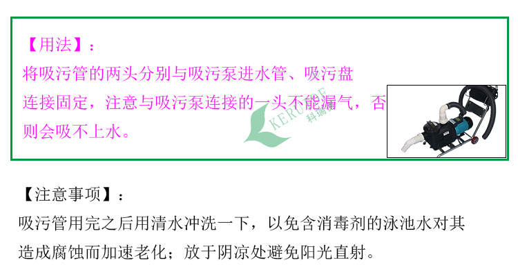 優點:使用壽命長、吸污快速、操作簡單等特點,在使用的時候需要有兩人配合,操作、維護簡單??梢愿鶕枨笞约河嗁徟浼M合,不同大小的泳池我們可以選擇不同的配件。配件等充足,售后服務好且快。