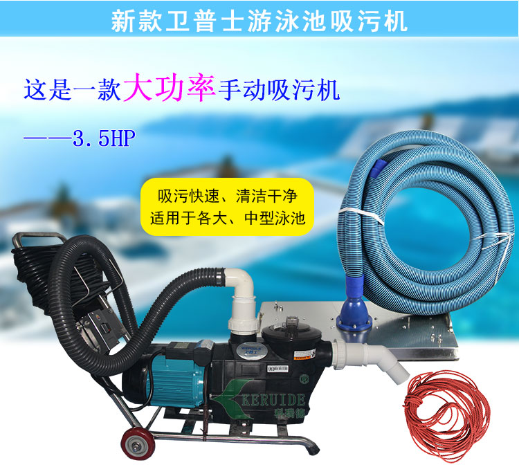 適用于游泳池,景觀池等的池底清潔吸污。使用時主機放在岸邊,操作人員無需下水,在岸邊用拉繩操縱吸污盤吸污,方便使用。適用于15-30米的各種泳池和景觀池等,一般中大型的游泳池都適合使用。