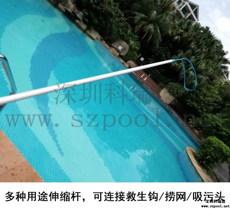 伸縮桿是泳池吸污機的主要配件之一,泳池手動吸污機(又叫岸基型吸污機,組合式吸污機)主要是泳池吸污泵與吸污管連接,吸污管的另一端與吸污頭連接,然后伸縮桿連接在吸污頭的手柄上,這樣就構成了泳池吸污機,伸縮桿是操作人員控制吸污盤的工具。起著關鍵性的作用。