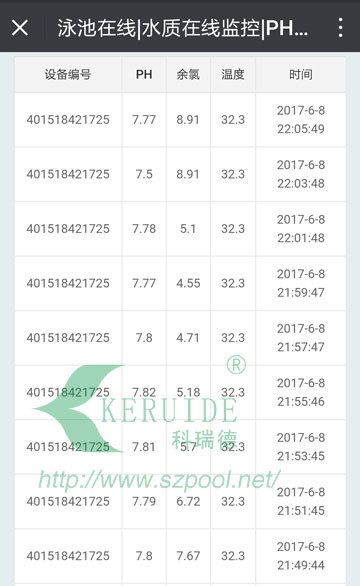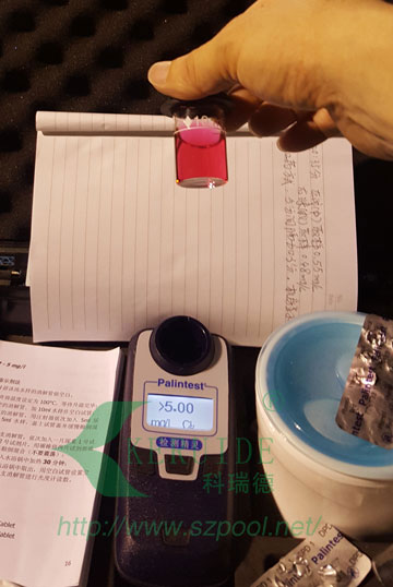 在晚上收場后(21:15),先投入氯粉使用得池水余氯超過5.0mg/L(約8.0mg/L),消毒粉大約加了20KG(圖2數據)。