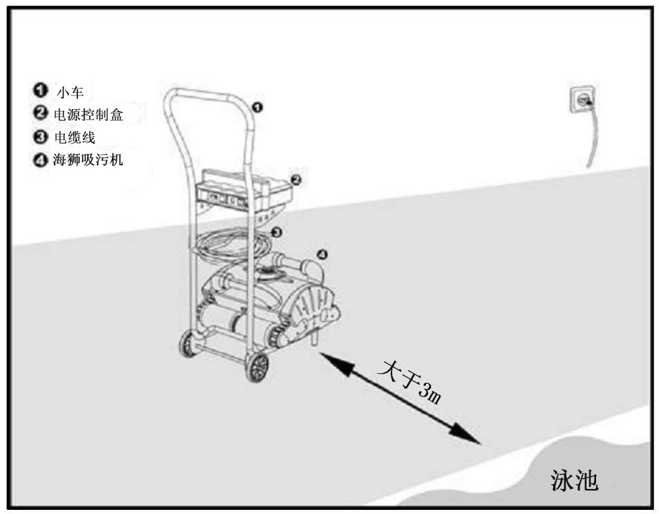 3. 嚴(yán)禁電控盒進(jìn)水,建議將其放置陰涼、通風(fēng)處、干燥的地方(如遮雨屋檐下,防止日曬雨淋的地方)工作;電控盒距離游泳池邊緣大于3m。