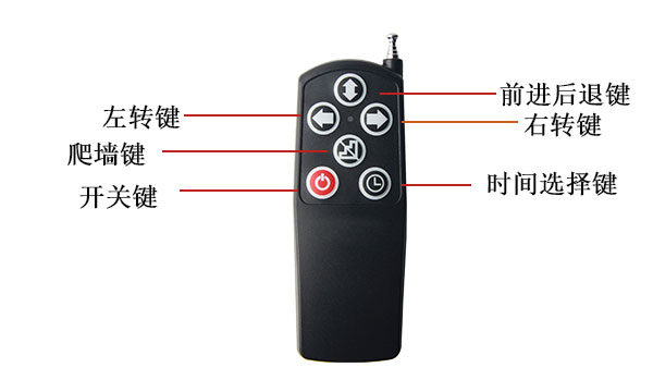 5. 遙控器操作技巧。當(dāng)機(jī)器在前行狀態(tài)按一下“前進(jìn)后退鍵”機(jī)器即刻后退運(yùn)行再按一下“前進(jìn)后退鍵”機(jī)器反向運(yùn)行。當(dāng)需要機(jī)器轉(zhuǎn)向時(shí)按下“左轉(zhuǎn)鍵”或“右轉(zhuǎn)鍵”可通過(guò)按下“左轉(zhuǎn)鍵”或“右轉(zhuǎn)鍵”的時(shí)間長(zhǎng)短來(lái)控制機(jī)器左轉(zhuǎn)或右轉(zhuǎn)的角度大小。“爬墻鍵”按下后開啟爬墻功能再次按下為取消爬墻功能。“時(shí)間選擇鍵”為選擇機(jī)器的運(yùn)行時(shí)間。“開關(guān)鍵”為開啟和關(guān)閉機(jī)器運(yùn)行。 注意:操作搖控器時(shí)禁止使用指甲或其它尖銳硬物來(lái)操作按鍵。搖控器與電控盒的距離不宜太遠(yuǎn)建議控制在10米以內(nèi)確保搖控信號(hào)能被電控盒順暢接收。防止搖控器沾水受潮。