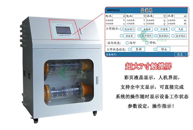 鹽氯機也叫次氯酸鈉發生器,它是游泳池消毒設備中的一種,由科瑞德開發設計,主要利用物聯網技術,能夠將數據自動上傳帶電腦端、移動端遠程在線監控,能隨時掌握及分析鹽氯機的運行狀態,達到很好的使用效果,輕松消毒!