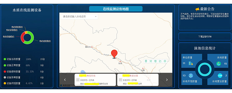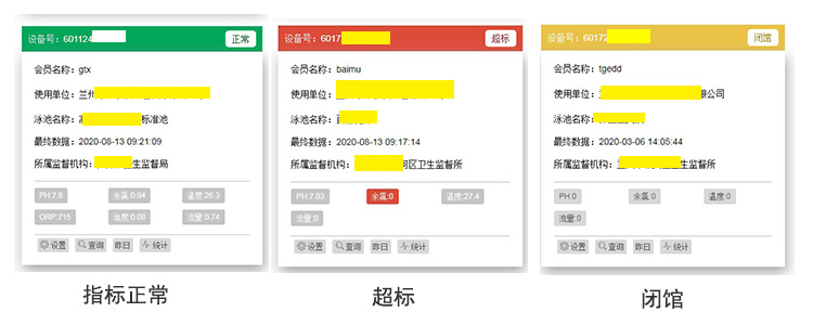 ???? 網(wǎng)絡(luò)監(jiān)控平臺,主要是接收、存儲及處理數(shù)據(jù)的平臺,通過網(wǎng)絡(luò)監(jiān)控平臺將“監(jiān)測設(shè)備”與手機電腦等終端聯(lián)系起來,組成“泳池水質(zhì)在線監(jiān)測系統(tǒng)”監(jiān)測設(shè)備發(fā)送出來的數(shù)據(jù),網(wǎng)絡(luò)監(jiān)控平臺接收后進行進行存儲、分析與判斷,檢測結(jié)果會第一時間傳送到電腦和手機端,一旦有超標(biāo)則馬上向指定用戶發(fā)送報警信息,泳池工作人員和衛(wèi)生監(jiān)督員可以通過電腦和手機等終端實時查看水質(zhì)的動態(tài)數(shù)據(jù)。