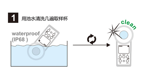 用池水清洗幾次取樣杯;