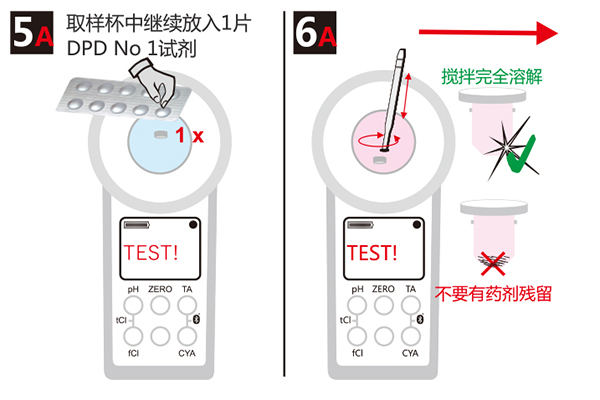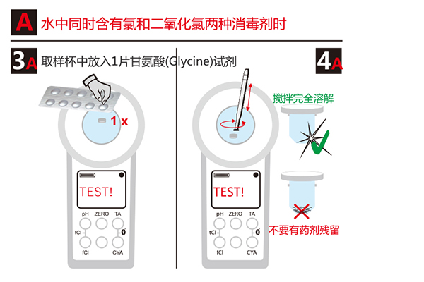 準備工具:普量水質檢測儀一套,DPD1試劑,甘氨酸試劑