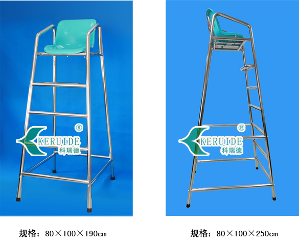 高度:泳池的救生椅標準高度為1.9米高,以供救生員在高處觀察,發現情況,以便進行急救。安全救生椅也要堅韌牢固,選用不銹鋼救生椅,不銹鋼中304不銹鋼是結實的,只有救生椅牢固了,救生員的安全。